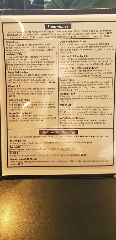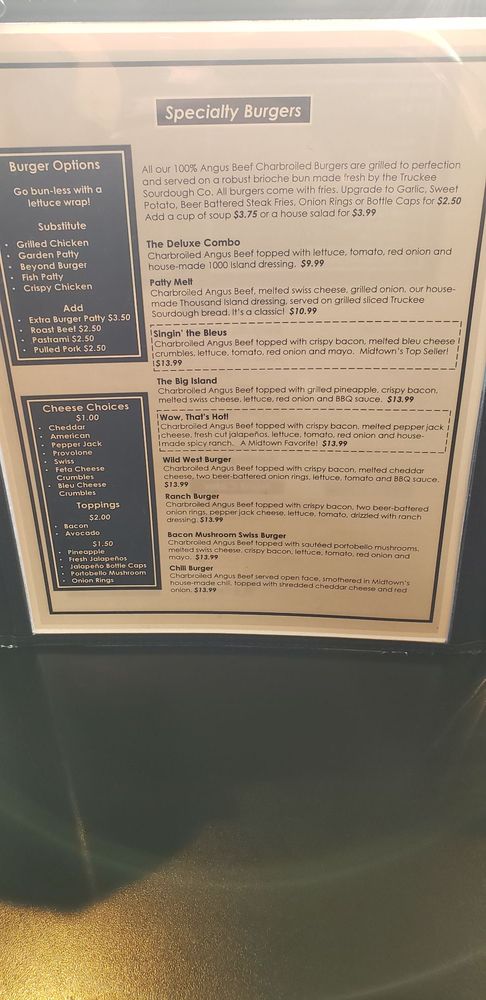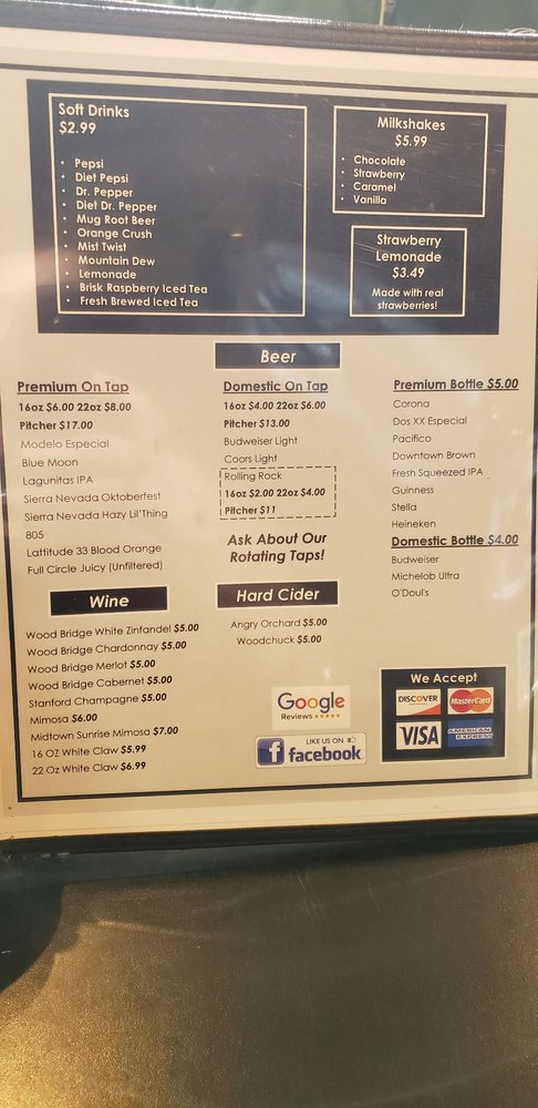 Midtown Grill is a popular American restaurant in Yuba City, CA, known for its delicious sandwiches and burgers. With a variety of options for vegans and vegetarians, as well as happy hour specials and a casual atmosphere, this spot is perfect for groups, families, or a quick lunch or dinner. Their starters like Chicken Wings, Mozzarella Cheese Sticks, and Chili Cheese Fries are a hit, setting the stage for a delightful meal. The menu also features breakfast items like Biscuits & Gravy, Chicken Fried Steak & Eggs, and California Omelette, catering to early risers. For those craving a lighter option, the Soup & Salad section offers refreshing choices like the Midtown Spicy Chop Salad and Black & Blue Tri-Tip Salad. Overall, Midtown Grill offers a diverse menu with something for everyone, making it a must-visit for food lovers in the area.